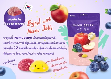 NAMU JELLY เยลลี่พรีเมี่ยม นำเข้าจากประเทศเกาหลีใต้ ผลิตจากน้ำผลไม้ มีวิตามินซีสูง อร่อยเหมาะกับทุกเพศทุกวัย เนื้อหนุบหนับ หอมกลิ่นผลไม้ รสแอปเปิ้ลและบลูเบอร์รี่ 2 รสชาติในซองเดียว